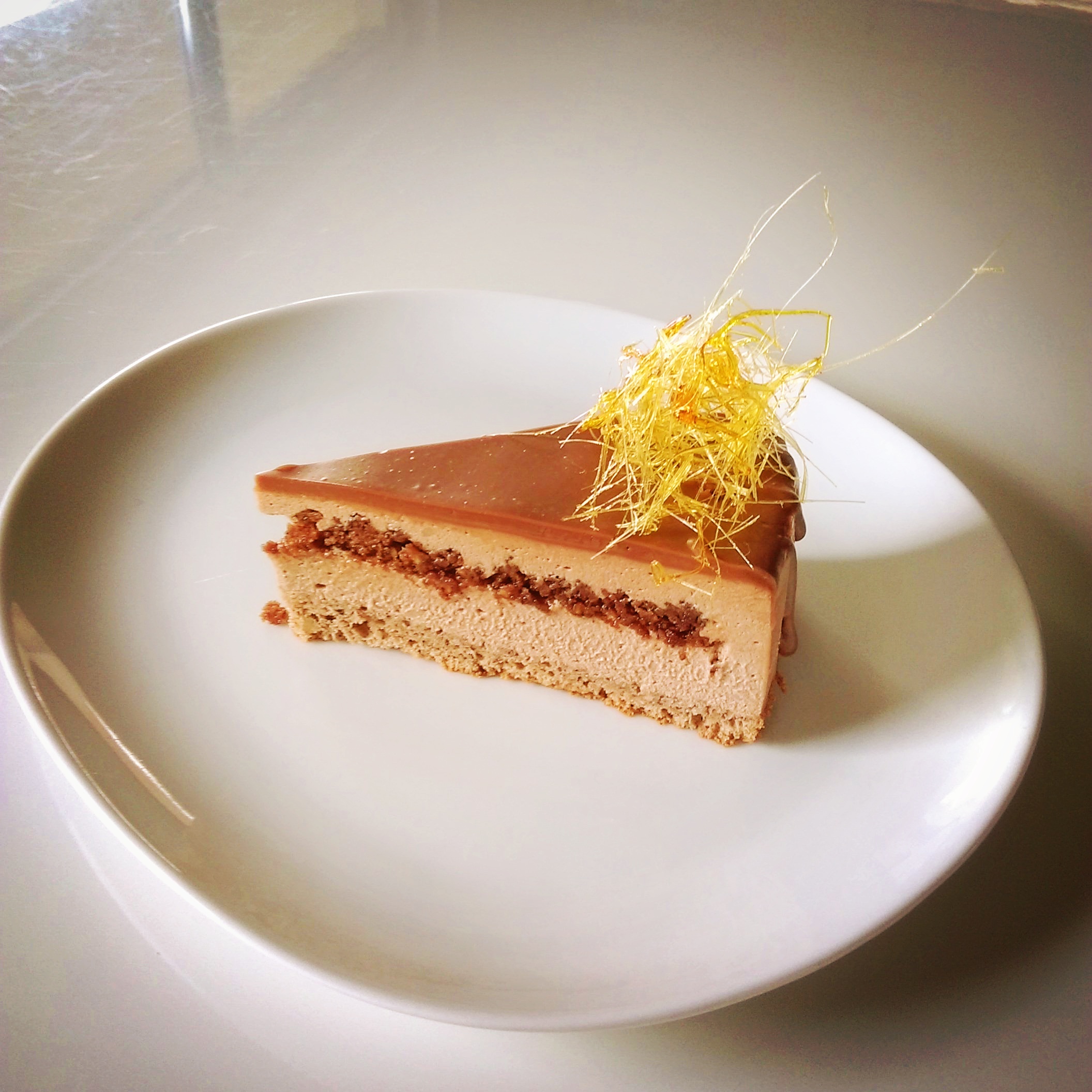Still deciding which piece looks better, one with caramelized hazenuts or one with golden caramel nest?