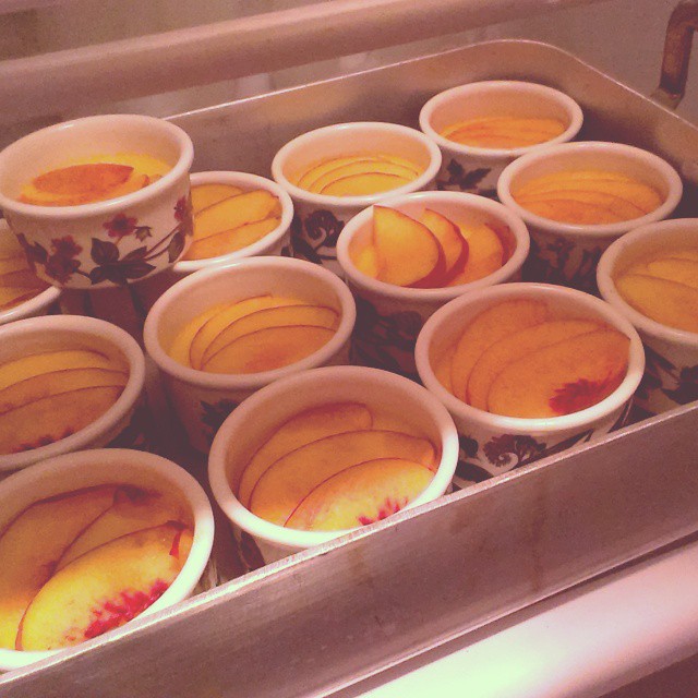 One day I was cleaning dishes and found serious amount of remekins. That kind of finding is quiet unusual. When remekins were already there was I found some time to cook/bake (still not sure how to categorise bain marie) classic and classy french dessert…Creme brulee. Guys were super happy and they did not mind that brulee had peach slices on top instead of brulee because I did not bring my blow torch along. No I have a small one in my purse (you never know when opportunity pops out).
